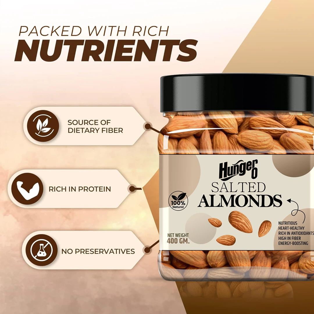 Boost your energy and nourish your body with Hungeg Salted Almonds. Packed with essential nutrients, these almonds support heart health, improve brain function, and promote healthy skin and hair. High in fibre and antioxidants, they aid digestion, strengthen bones, and help maintain healthy blood sugar levels. Enjoy a natural, wholesome snack that keeps you active and energized every day.