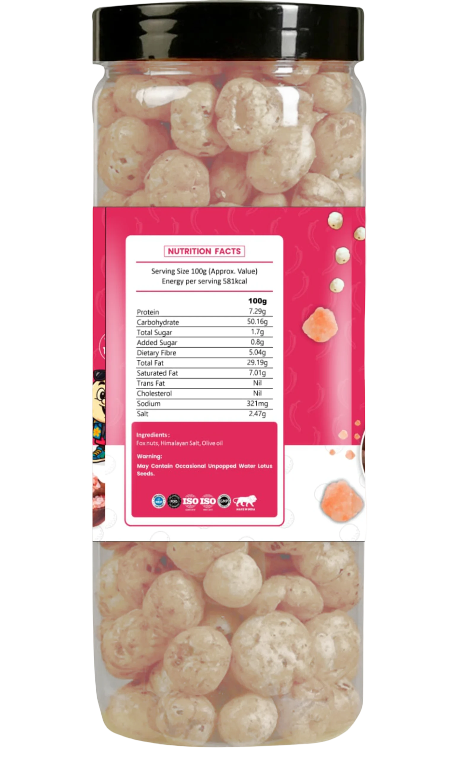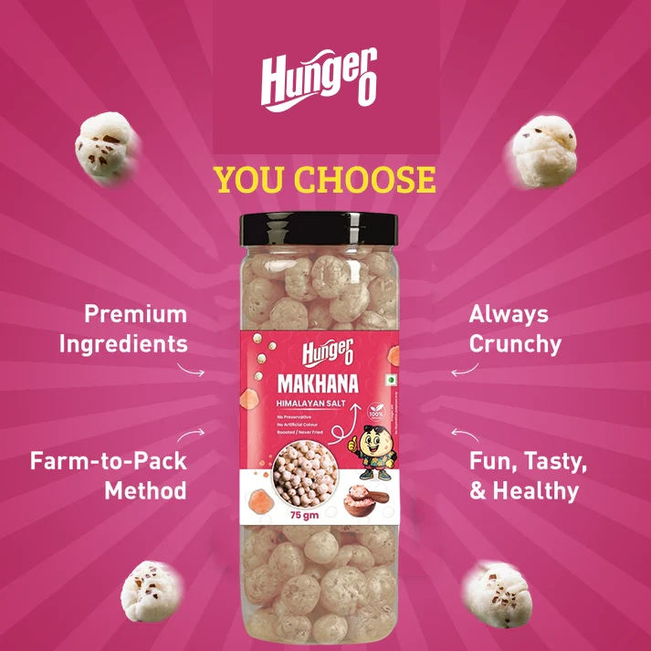 Enjoy a healthy and crunchy snack with Hungeg Makhana Himalayan Salt. Roasted to perfection and never fried, these makhanas are free from preservatives and artificial colors, making them a wholesome choice for daily snacking. Light, nutrient-rich, and naturally flavored with Himalayan salt, they promote digestion, support heart health, and provide an energy boost. Perfect for a guilt-free snack anytime, anywhere.